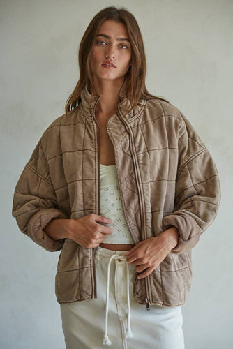 Long Sleeve Quilted Knit Mineral Washed Jacket