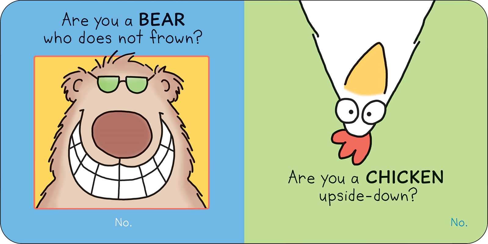 Young readers will giggle at the interactive text that asks them: Are you a BEAR who does not frown? Are you a CHICKEN upside-down? This charming book reminds readers no matter who we are, it is great to just be ourselves!